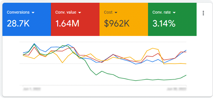 - Chaotic Ad Account Structure: As a medical device product, OnPoint’s Google Ads account was disorganized and inefficient. They were running a multitude of unoptimized campaigns and ad sets, which made it impossible to accurately track performance and allocate budget effectively.