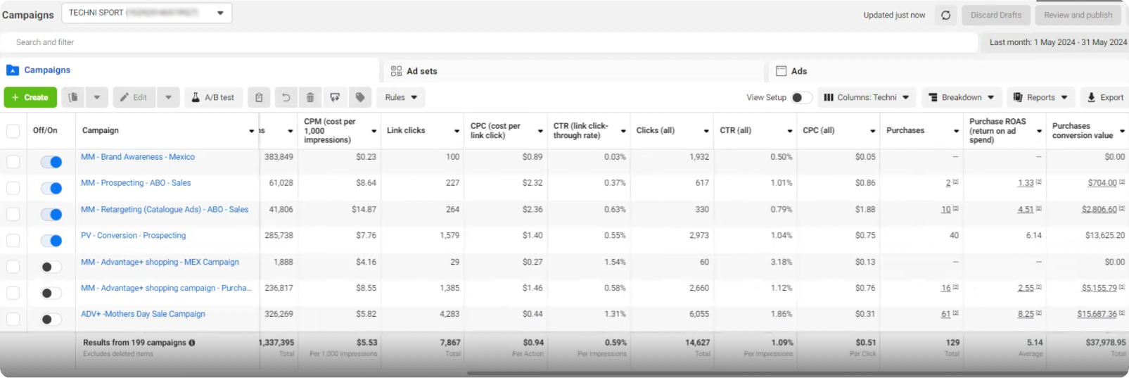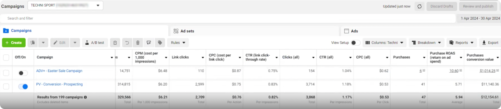• Inability to Scale Profitably: Technisport was generating some revenue from advertising, but their growth was limited. Their ad campaigns were not structured to scale efficiently, and they were unable to increase their ad spend without seeing a proportional drop in their Return on Ad Spend (ROAS).